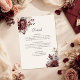 Dela viktig information om bröllopsdagen med stil med hjälp av detta koordinerande boho-kort med blommiga detaljer. Designat för att matcha din inbjudan, har detta kort rika burgunder- och rosafärgade blommor med utrymme för boendeinformation, transport, dresscode eller webbinformation. Den minimalistiska layouten säkerställer tydlighet medan de blommiga accenterna håller det charmigt och sammanhängande. Fullständigt redigerbar text gör det enkelt att anpassa för din speciella dag. En viktig del av alla välorganiserade brölloppsdetaljer. Matchande artiklar finns tillgängliga.