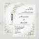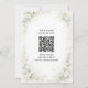 En förfinad boho blomsterbröllopsinbjudan med en mjuk, salvia grön och elfenbensvitt akvarell eukalyptus ram. Framsidan visar en elegant minimalistisk layout med en ren mitt för personlig text, medan den matchande baksidans design är rikligt dekorerad med botaniska element och innehåller ett dedikerat utrymme för en QR-kod - perfekt för RSVP, bröllopswebbplats eller evenemangsinformation. Romantisk, organisk och tidlös, idealisk för moderna trädgårds- eller naturinspirerade bröllop.