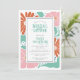 Upplev hur du återkommer med vårt vita färgstarka tema för blommigt inbjudningskort för möhippan, med dekorativt kalligrafiskt skript för elegant. Vibrant hues kom tillsammans för att skapa ett kalejdoskop av vilda blommor, med ett vitt ram-täcke på denna blomma mönster. Ram innehåller din inbjudningstext, med pulserande nyanser och skript av söt retro stil. Fullt blomman mönster visas på baksidan. En levande botanisk stil.