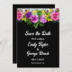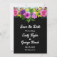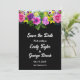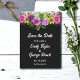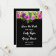 Denna inbjudan från elegant blommigt bröllop spara datum är perfekt för en modern blommigt bröllop. Den romantiska designen har en färgstark vattenfärgad blommigt bouquet med vit elegant på svart bakgrund.
