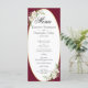 Elegant Boho Burgundy Blommigt Bröllop Menu Program