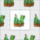 En illustration av tre söta kaktusar med rosa blommor i små terracotta pots.