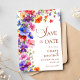 This Elegant Boho Chic Wildflower Garden Wedding Save the Date brings a burst of vibrant color that instantly sets the mood for your big day. With whimsical watercolor wildflowers and a stylish calligraphy script, this design feels dreamy, joyful, and perfect for couples who love a little whimsy with their elegance. The mix of bold blooms and soft brushstrokes makes it a gorgeous fit for boho, garden, rustic chic, cottagecore, coastal, modern floral, and outdoor wedding themes. And because wildflowers are beautiful year-round, this Save the Date works effortlessly for spring, summer, fall, and even winter weddings that could use a touch of color. You can customize every detail to match your vision, from names and dates to layout and text, so your announcement feels truly personal. Plus, if you're short on time, you can send it digitally for an easy, stress-free way to share your exciting news. Send yours today and set the perfect tone for your wedding!