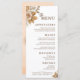 Elegant Boho Neutralt Blommigt Accents Bröllop Menus. Skär dina gäster med Elegant bröllop Menus Ökar din bröllop matupplevelse med dessa förfinade och romantiska bröllop menyer. Den delikata Boho Neutralt-Blommigten Dekorfärg på en skarp vit bakgrund skapar en tidslängd och elegant estetisk. Menyerna har tydlig typografi och typografi av eleganten, där aptisatorer, kurser, efterrätter och kall som erbjuds framhävs. Den mjuka vattenfärgsbakgrunden på motsatt sida, personlig med parets initialer, lägger till en liten bit stollig.