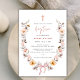 Fira dopet med denna eleganta moderna minimalistiska dopinbjudan, med akvarellillustration vildblomma blomsterkrans, bin, båge och enkel neutralt kors.