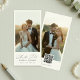 Dela din kärlekshistoria med denna eleganta bokmärkes-save the date. Den rena designen har två favoritfoton, romantiskt skript och en praktisk QR-kod så att gästerna enkelt kan hitta din bröllopsinformation. Enkel, hjärtlig och tidlös — ett vackert sätt att berätta för de du älskar att din för evigt börjar snart.