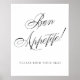 Den romantiska och tidlösa skylten "Bon Appetite: Hitta din plats" ger en enkel elegans till vilken klassisk bröllopsmottagning, dusch eller party-motiv som helst. Den lyxiga skriptmallen har en nyfiken och vacker modern svart kalligrafiklammer på vit bakgrund. Det vackra teckensnittet med anpassadets bakgrund färg gör det enkelt att passa alla teman. För andra färg eller matchande produkter, gå till butiken JustFharryn Zazzle eller kontakta designern, c/o Fharryn@yahoo.com Alla höger reserverade. #zazzlemade