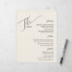 Den här eleganten, som är en vanlig middag på 11 x 11 tum, har en svart text på en benvit bakgrund med texten "Menu", med platshållare för 2 aptiserare, 3 entrees, 2 sidor och 2 desserter.
