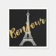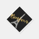 Trendigets pappra party-napkin har vit Eiffel Torn silhuette med guld modernt skript på svart bakgrund