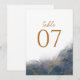 Styr gästerna till deras platser med det här sofistikerade bordsnumret bröllop. Med en lyxig marmor med blå marmorbakgrund med skarpa accenter från guld, ger den här designen dig elegans till din bröllopsdekanter. Den moderna typografin garanterar tydlighet samtidigt som den bevarar en snyggt som är perfekt komplement till formella och contemporary bröllop teman. Anpassa numren så att de passar din sittplats arrangemangt och skapa en sammanhängande, förfinad atmosfär för din speciella dag.