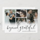Elegant bröllop tackar er kort för att skicka våra gäster till bröllop för att visa er uppskattning för dem som hjälper er att fira er fantastiska dag. Bilderna 4 bröllop på framsidan, titeln "bortom tacksamhet" i ett elegant-skript, på baksidan är ett foto av er båda på din smekmånad och en personlig tackkort.