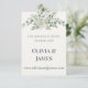 The design highlights the couple’s names in graceful script, paired with clean serif and sans-serif typography for clarity and sophistication. The sage and eucalyptus green color palette prints beautifully and complements a wide range of invitation styles without overpowering them.