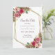 Elegant chic botaniskt Spara Datumkortet har en romantisk vattenfärg för blommigt som visas i lövgieneri på en klassisk vit bakgrund. Ett mousserande, gyllene, kristallformat färg-ram ger trendig beröring. Traditionell, klassisk formulering ger en tidlös sofistikering. Anpassa informationen om bröllop för dina gäster i elegant lila-assistentsbrev och skript. Kortets baksida är ett vackert matchande lila-kassett.