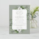Denna eleganta sagegröna botaniska blomster vigselinbjudan kan anpassas med din information i modern typografi och ett speciellt foto på baksidan. Designad av Thisisnotme©