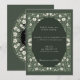 Mörkgrön bröllopsinbjudan med eleganta vita blomsterdetaljer skapar en tidlös och romantisk look för din speciella dag. Den symmetriska botaniska ramen inspirerad av naturen tillför en förfinad och konstnärlig touch. Perfekt för trädgårdsbröllop, skogstematiska ceremonier eller höst- och vintersfiranden. Den ovala mitten ger en ren yta för att anpassa namn, datum och lokaldetaljer. Idealisk för par som söker en sofistikerad men ändå naturlig inbjudningsstil. Designad för både tryck och digital användning, vilket säkerställer en polerad och högkvalitativ presentation.
