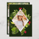 Detta eleganta julkort har en fantastisk diamantformad fotoram, omgiven av livfulla akvarellbotaniska illustrationer av frodig grönska och festliga röda bär. Mot en djup skogsgrön bakgrund utstrålar designen en modern och sofistikerad charm.