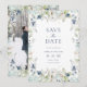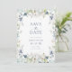 Elegant botanisk fotografering Save the Date. Denna samling visar upp handmålade akvatellfärgade salvia gröna blad och ömtåliga dammiga blå bär, som ger en fängslande blandning av sofistikering och charm. Med möjlighet att välja mellan marinblå eller salvia grön text kan du anpassa denna svit för att perfekt komplettera ditt bröllopstema och din personliga stil. Från intima sammankomster till storslagna firanden sätter Sage Green & Navy Blue Botanicals bröllopssvit scenen för en verkligt oförglömlig tillställning.