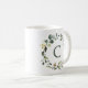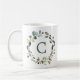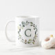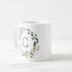 Elegant botanisk grönskekrans med monogram kaffemugg