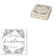 Specialdesignad vigselfavorit-gummistämpel med modern elegant handritad blad- och gren-design. Personifiera med brud och brudgum/par-namn och bröllopsdatum för en touch av stil på vigselkaffe/kaffebönor eller tefavoriter och gåvor.