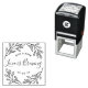 Skräddarsydd självbläckande vigselfestgåvostämpel med modern elegant handritad blad- och grenformad design. Personliggör med brud och brudgumme/par-namn och vigselfestdatum för en touch av stil på vigselfest-kaffesump/-bönor eller te-favoriter och gåvor.