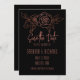 Vi presenterar en sofistikerad och skräddarsydd design för Save the Date-kort som utstrålar elegans. Detta exklusiva kort visar en noggrant handritad illustration av en fantastisk rosenbukett. Delikatt dekorerad med en falsk glitterig roséguld nyans, kommer rosorna till liv mot en fängslande svart bakgrund. Det bästa är att texten kan anpassas helt för att återspegla din unika stil och budskap.