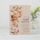 Elegant Botaniskt Inbjudningskort för möhippan. Denna elegant och det orusliga fallet inbjudningskort för möhippan har hand-målade vattenfärger, bränd orange och terracotta löv, kräm och beige dahlias, och vacker perfekt av rost-färgad ro under en höst i bröllop! Baksidan av inbjudan har en enkel taupbakgrund med en samordnande bukett.