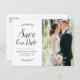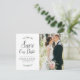Meddela ditt bröllop-datum med det här snyggten-skriptkortet med botaniskt inslag och ett foto av paret. Texten kan redigeras tillsammans med den vackra bilden.
