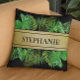 Lägg till skönhet, personlighet och lyx till din vardag med den botaniska grönten dekorativ kudde, med lush tropical lövs och ett faux guld namn-band. Perfekt för personligens hemmadekoration, hembiträden eller för att lägga till en chic till valfritt rum. Designad för att komplettera modern, tropisk eller naturinspirerad estetik. Anpassa med ditt namn eller en älskad persons för en unik beröring.