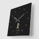 Elegantens svarta väggklocka med ett botaniskt monogram för guld och eget namn.