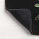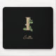 Den svarta musmattan i elegant har ett botaniskt monogram i guld i mitten.