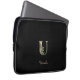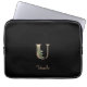 Elegant svart laptop sleeve har ett botaniskt monogram guld i mitten.