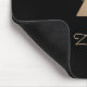 Den svarta musmattan i elegant har ett botaniskt monogram i guld i mitten.