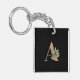 Elegantens svarta nyckelkedja med ett guld botaniskt monogram med huvudstaden A brev i mitten.