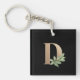 Elegantens svarta nyckelkedja med ett botaniskt monogram guld med stort D brev i mitten.