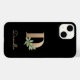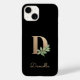 Svart telefonväska i elegant har ett botaniskt monogram i guld i mitten.