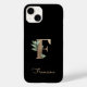 Svart telefonväska i elegant har ett botaniskt monogram i guld i mitten.