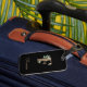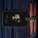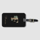 Elegant svart bagagemärke med ett botaniskt monogram guld i mitten.