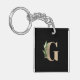 Elegantens svarta nyckelkedja med ett botaniskt monogram guld med stort G brev i mitten.