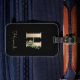 Elegant svart bagagemärke med ett botaniskt monogram guld i mitten.