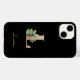 Svart telefonväska i elegant har ett botaniskt monogram i guld i mitten.