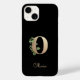 Svart telefonväska i elegant har ett botaniskt monogram i guld i mitten.
