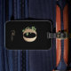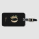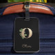 Elegant svart bagagemärke med ett botaniskt monogram guld i mitten.