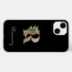 Svart telefonväska i elegant har ett botaniskt monogram i guld i mitten.