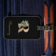 Elegant svart bagagemärke med ett botaniskt monogram guld i mitten.