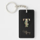 Elegantens svarta nyckelkedja med ett guld botaniskt monogram i mitten.