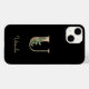 Svart telefonväska i elegant har ett botaniskt monogram i guld i mitten.