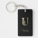 Elegantens svarta nyckelkedja med ett guld botaniskt monogram i mitten.