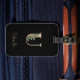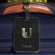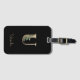 Elegant svart bagagemärke med ett botaniskt monogram guld i mitten.