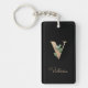 Elegantens svarta nyckelkedja med ett guld botaniskt monogram i mitten.