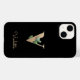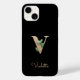 Svart telefonväska i elegant har ett botaniskt monogram i guld i mitten.